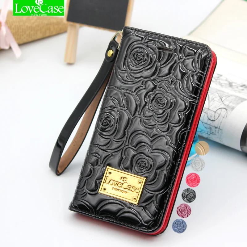 Cheap Latest 6s plus camellia wallet flip Patent Leather Case for iPhone 6 6S Plus 6splus Genuine Leather phone Bag Pouch Phone Cover offer